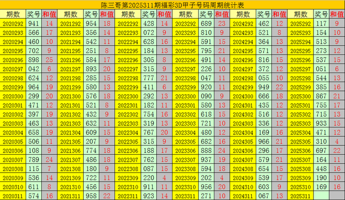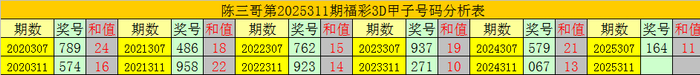陈三哥3D第2025311期甲子号分析: