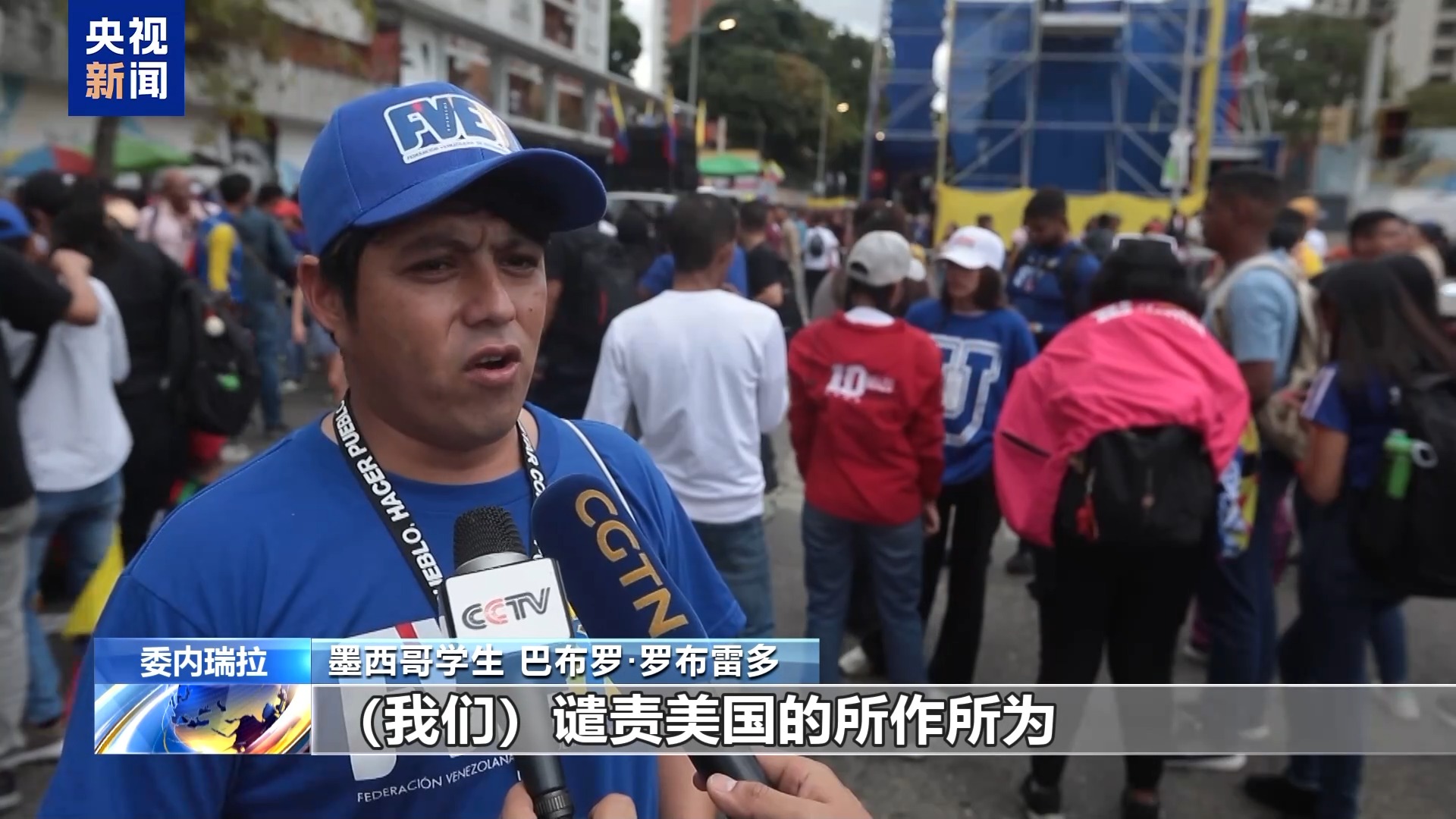 墨西哥学生 巴布罗·罗布雷多:(我们)谴责美国的所作所为,也包括对墨西哥的所作所为。他们也在威胁我们(墨西哥),我们全力支持委内瑞拉人民。我认为帝国主义是这样运作的,不断发出威胁。但他们会遇到强大、坚韧的人民,绝不会让他们得逞。